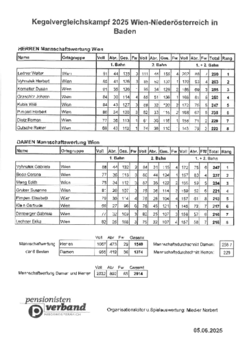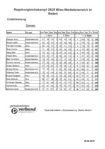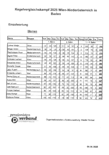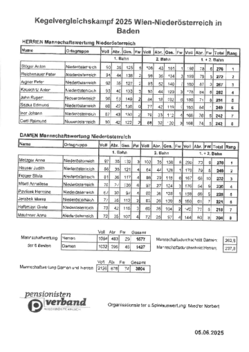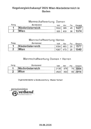 Das Spiel begann ziemlich ausgeglichen und umso länger gespielt wurde, wurden die niederösterreichischen Damen und Herren immer stärker. Obwohl Walter Lechner aus Wien die höchste Punktezahl erreichte, mussten wir den Sieg schweren Herzen an Niederösterreich abgeben, somit ging der Wanderpokal an Niederösterreich.